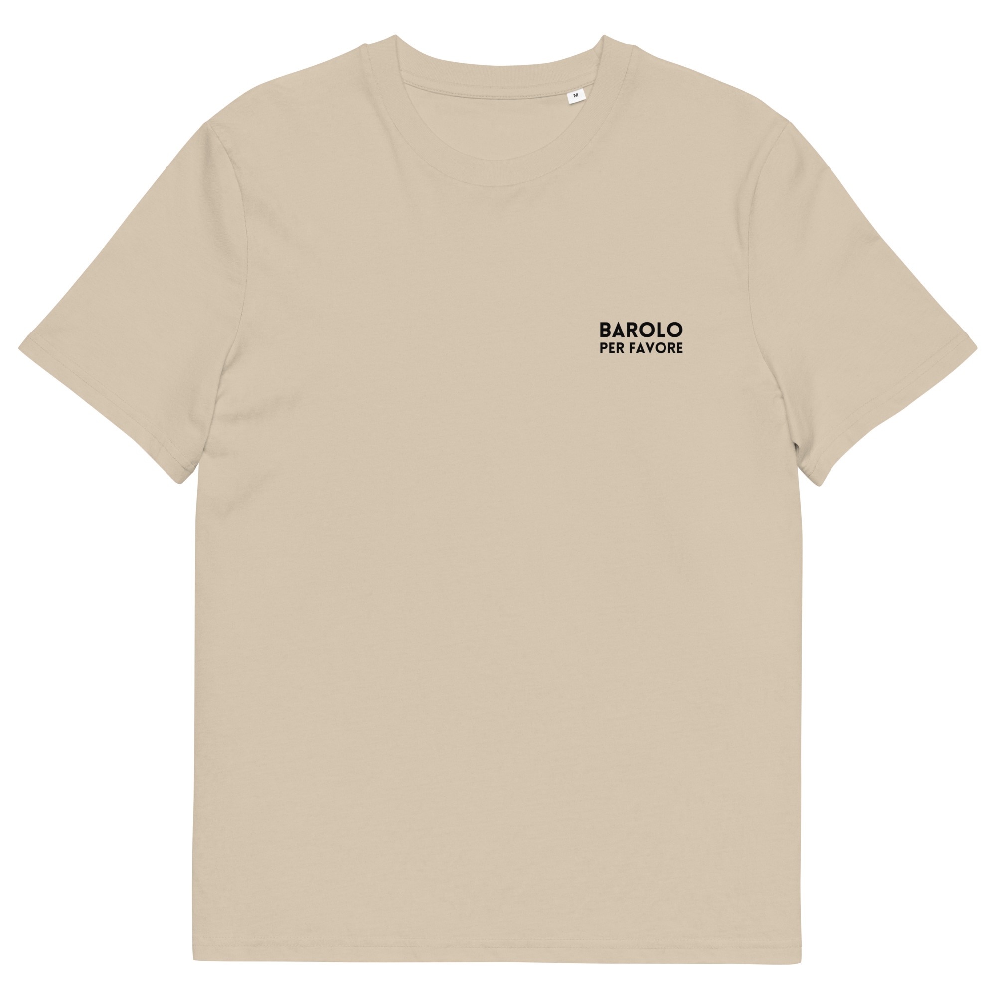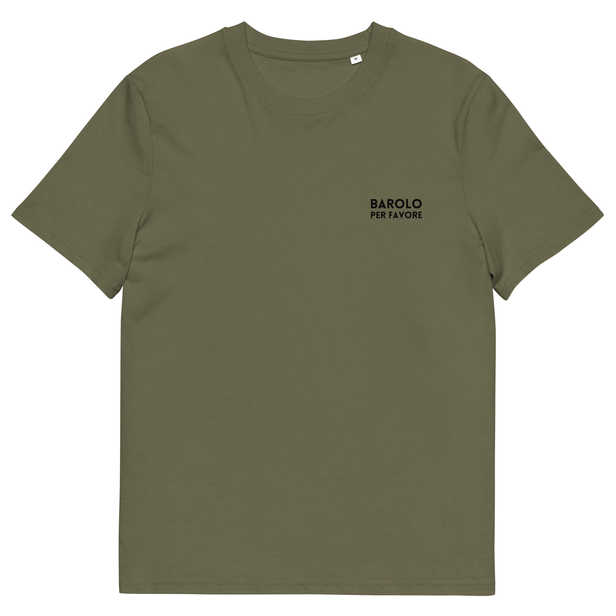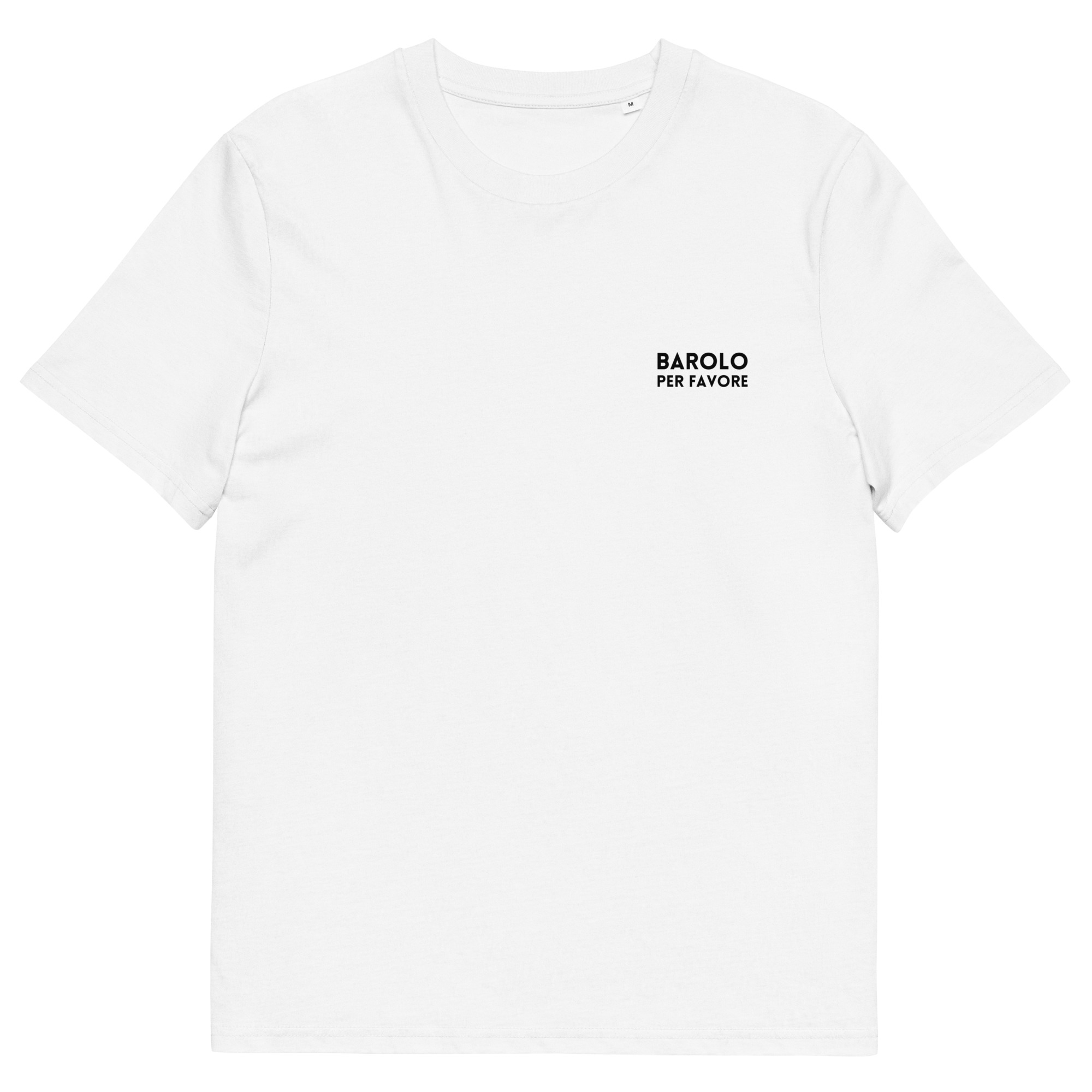 • “Barolo per favore” printed in black on left chest