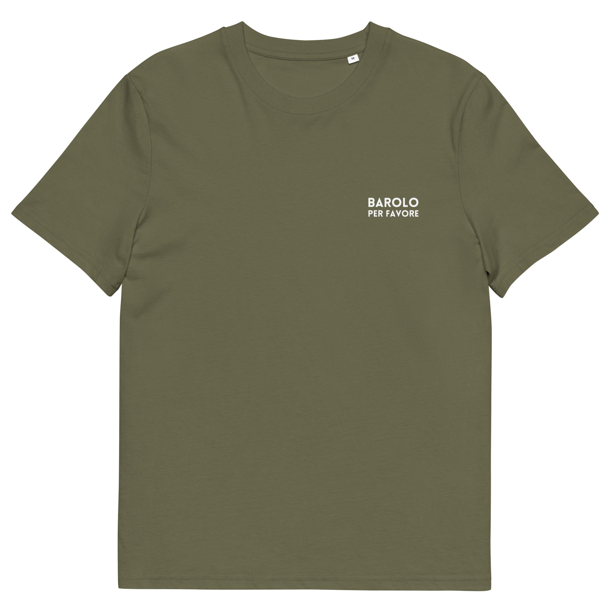 • “Barolo per favore” printed in white on left chest